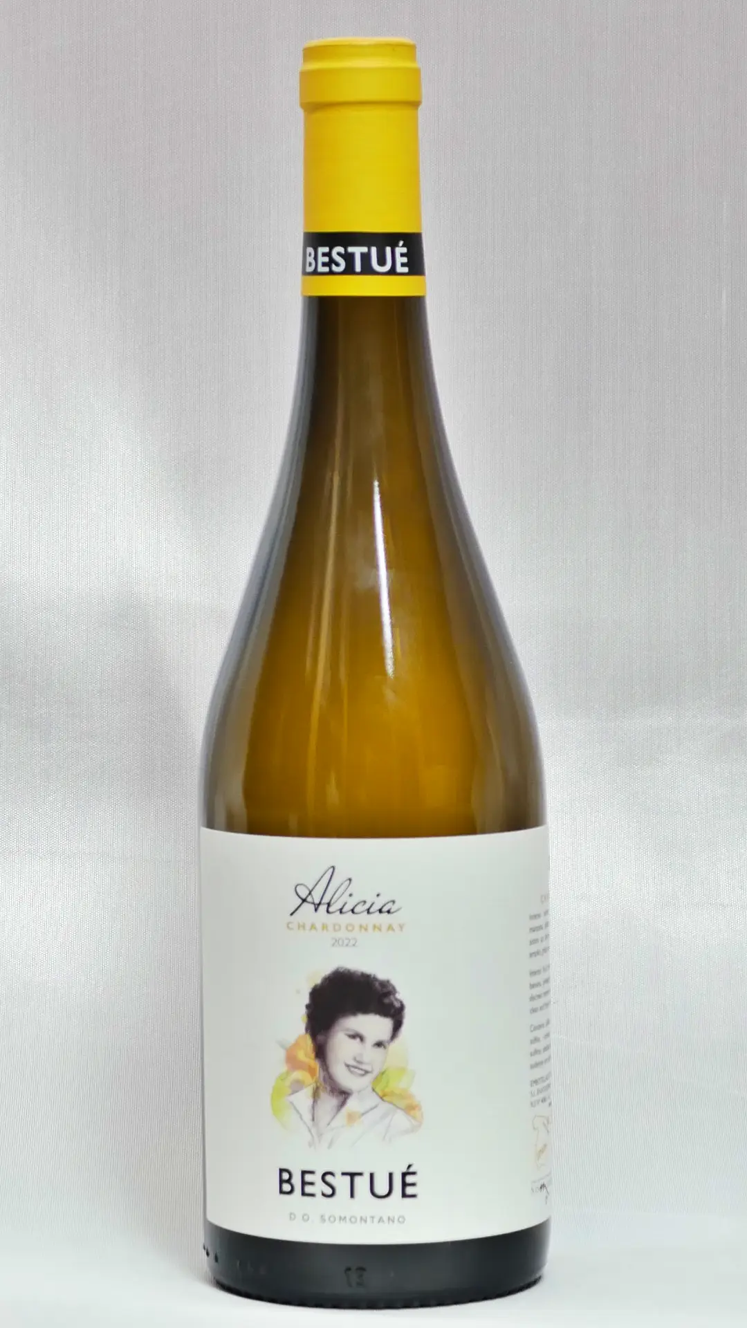 Alicia es un vino de Chardonnay elaborado en la Denominación de Origen Somontano por las bodegas Bestué. Este Alicia Chardonnay muestra toda la potencia de una uva francesa que se ha aclimatado estupendamente en Huesca. Es un vino muy fácil de beber ya sea solo o acompañando alguna propuesta gastronómica.
